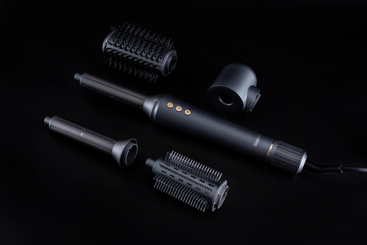 - Gli accessori includono cilindri arriccianti, spazzola ovale, spazzola rotonda e asciugacapelli veloce, sfruttando l'effetto Coanda per soddisfare tutte le tue esigenze di styling con un solo dispositivo.